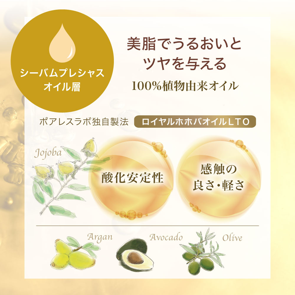独自製法を採用した植物由来の美容オイル「シーバムプレシャスオイル(既存商品)」を原料に使用したオイル層と、ハリとうるおいを与える美容化粧水層の2層をブレンディングして使用するオイルスプレー。サラッとした軽いつけ心地で、フェイスだけでなくボディやヘアにも、手軽に簡単にうるおいチャージできるミストスプレータイプです。